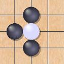 A stone (or group of stones) is encircled when all places above, below, left and right are opposing stones (or board edge).