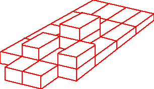 While I make no claims to be an expert on perspective drawing, the diagram shows the building made of 22 blocks.