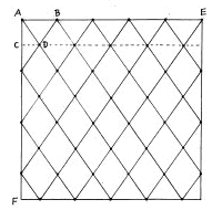 By drawing a line on the bias as shown in the adjoining diagram, from one corner to another, and crossing and paralleling the same, it will be found that 41 vines can be planted, a little over nine feet apart, and well within the fence line.