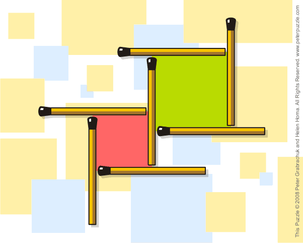 Seven matchsticks form two squares as shown in the illustration. Move three matchsticks to get three squares. You can rotate matchsticks, but you can't overlap and/or damage them.