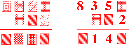 The idea is that each type of sticker stands for a different number, but that this number is the same wherever that sticker occurs.